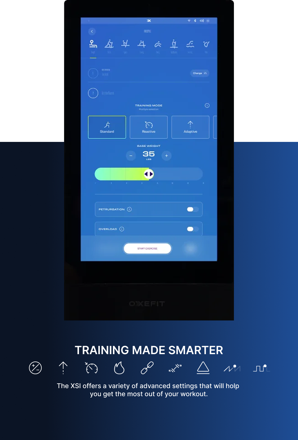• Adaptive Training Modes– Overload, Chains/Inverted, Burnout, Adaptive, VBT, and Perturbation