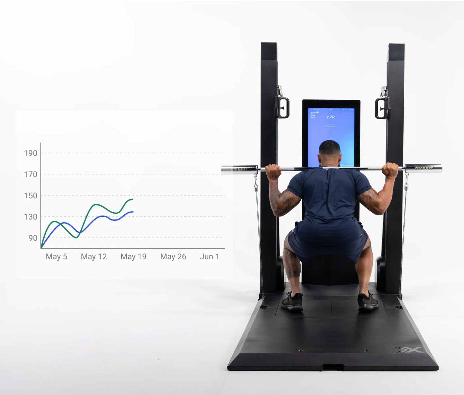 With the XS1 smart training home gym, observe real-time performance of power, velocity, load, and balance to improve your form and help prevent injury. Track your progress and share your gains and achievements with your friends!